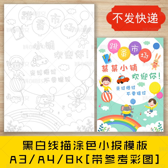 跳蚤市场摊位海报手绘素材电子版幼儿园手抄手工儿童招牌广告自制热门设计联盟服务商