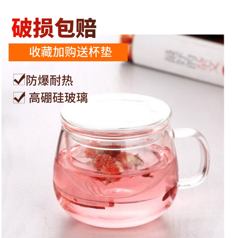 包邮花茶杯加厚玻璃杯泡茶三件杯带庚滤耐热杯子办公室家用水杯热门设计联盟服务商