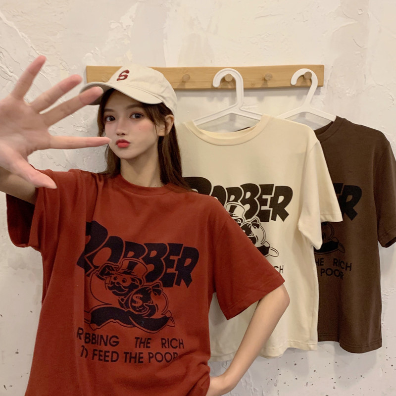 实拍2021夏季~新款潮韩版宽松大码印花字母卡通短袖T恤女ins热门设计联盟服务商