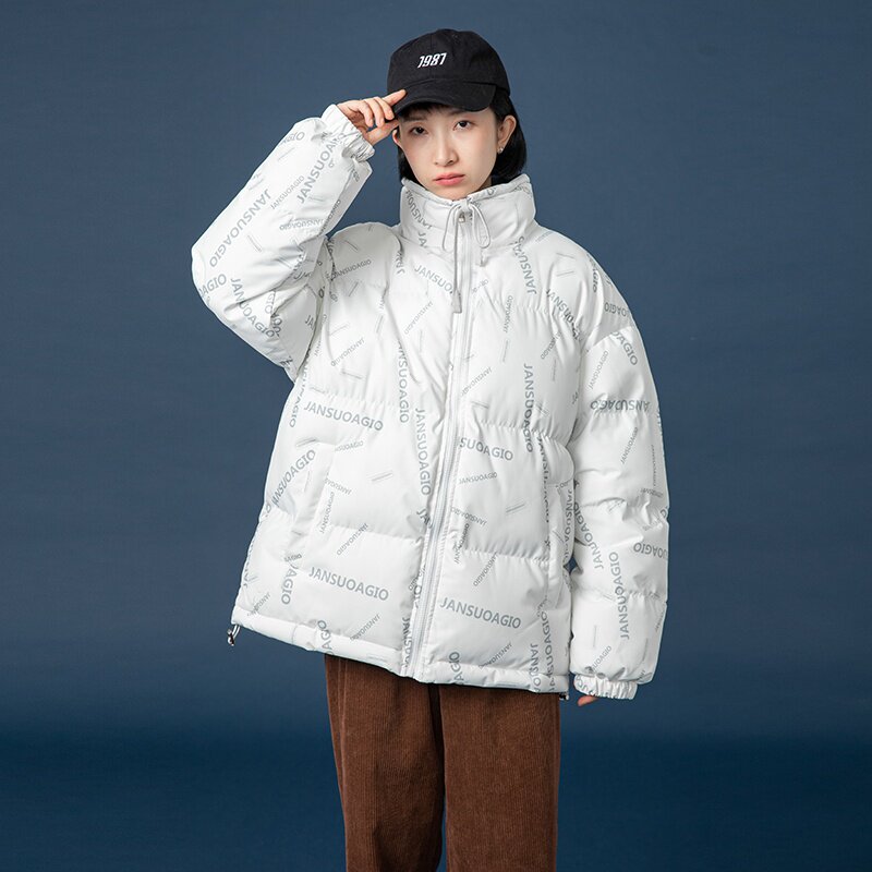 棉服女韩系温柔风2021年新款加厚冬季字母短款棉袄设计感小众外套热门设计联盟服务商