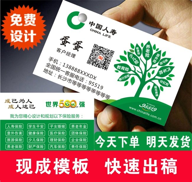 中国人寿保险名片 防水制作 双面免费设计覆膜定制印刷包邮铜版纸热门设计联盟服务商
