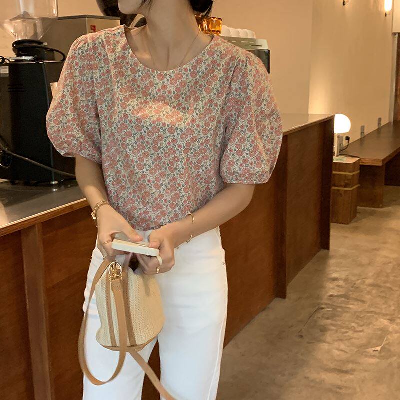 复古碎花圆领泡h泡短袖设计感小众夏季2021年新款韩版上衣潮热门设计联盟服务商