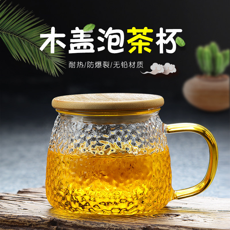 耐热玻璃茶杯加厚锤纹三件杯花茶杯带盖水杯办公杯过滤泡茶杯热门设计联盟服务商