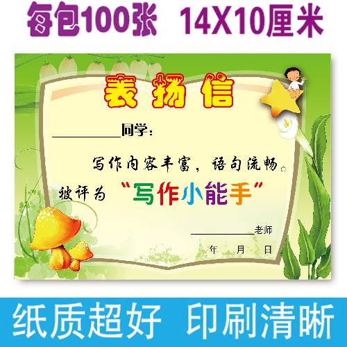 51号鼓励信学生中小奖状能手写作小通用卡通表扬朽主任可选