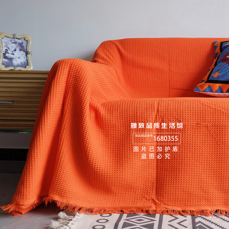 北欧素色仿棉麻粗线梭织全包沙发罩巾装饰盖布桌布床尾搭盖线毯子热门设计联盟服务商